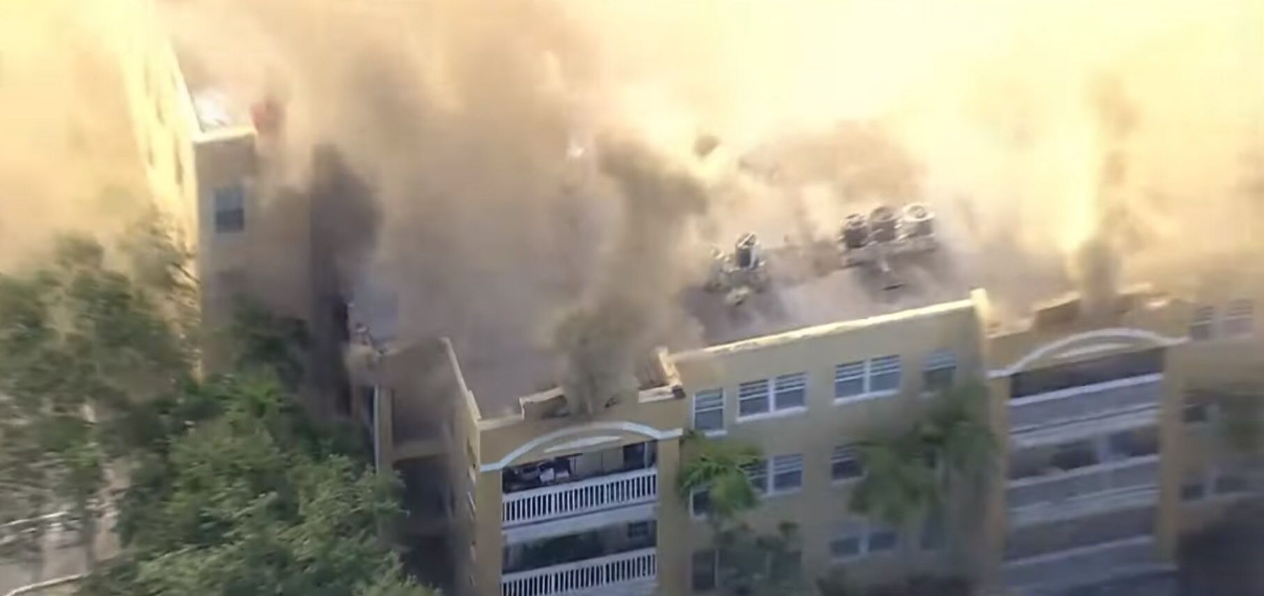 The Temple Court Apartments in Miami were an older building. In the images below, we can see how building walls are standing — perhaps they are concrete. The roof structure was likely wood, and it burned quickly and completely.