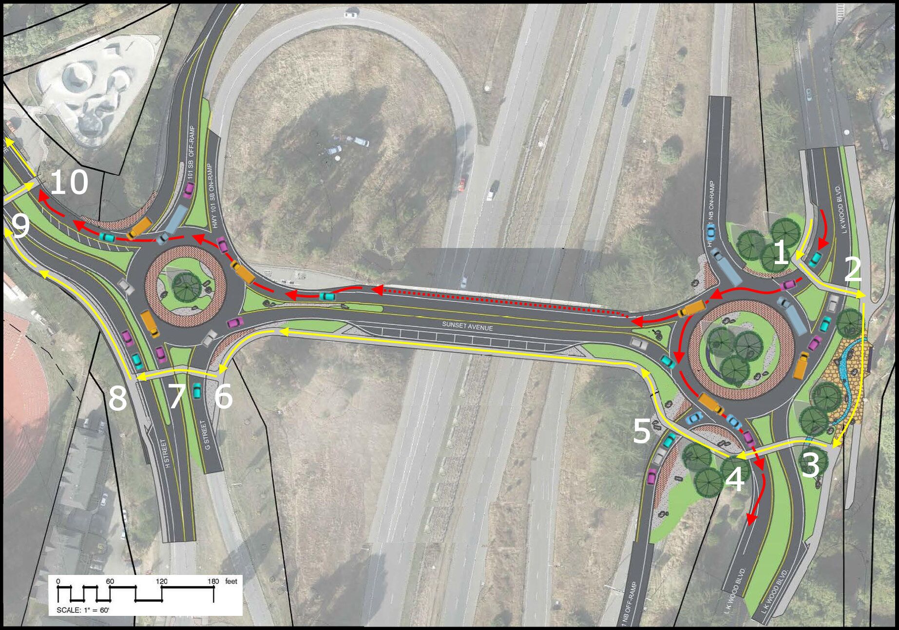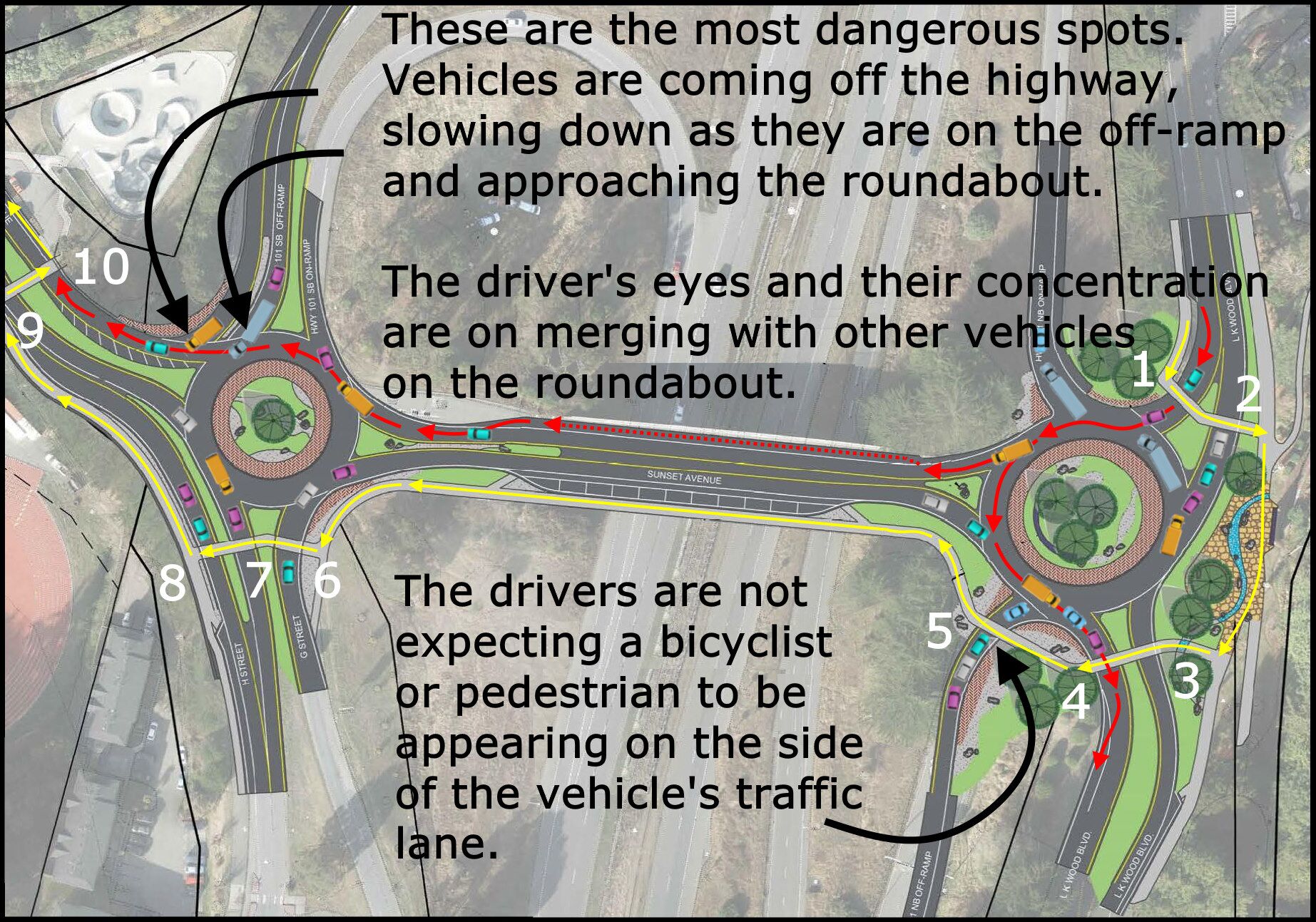 Part 2 – Sunset and LK Wood / Highway 101 roundabouts — Will this work? Is this safe?