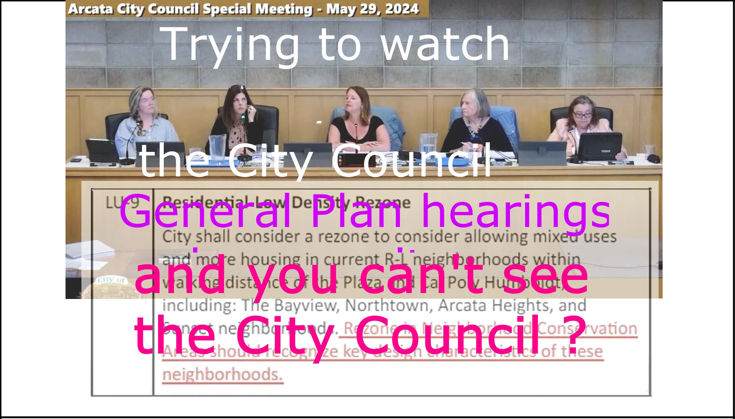 If you watched the live video stream or the YouTube or City video of the May 29, 2024, meeting, this is what you saw for 9-1/2 continuous minutes.